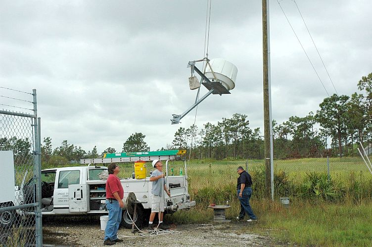 Mike, on winch, guides antenna down