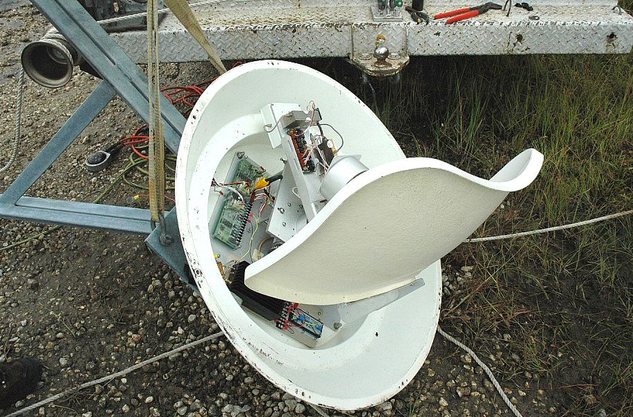 The Ultrascan microwave antenna (used for news and remote broadcasts) is on its way down